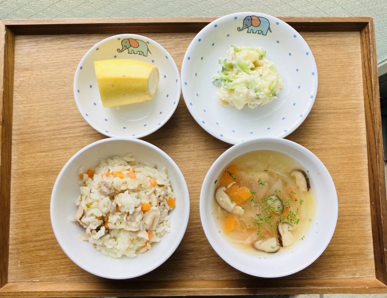 ・カラフルピラフ・ツナサラダ・オニオンスープ・バナナ