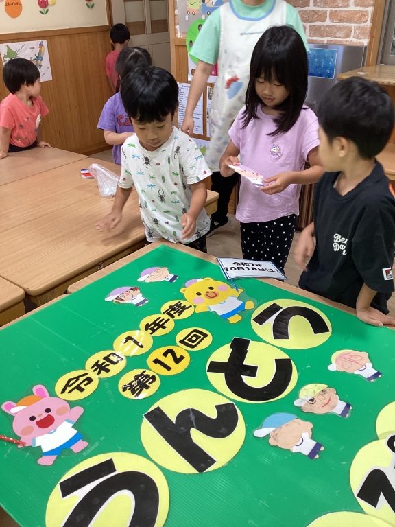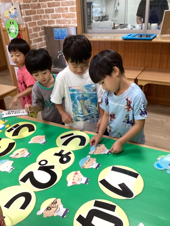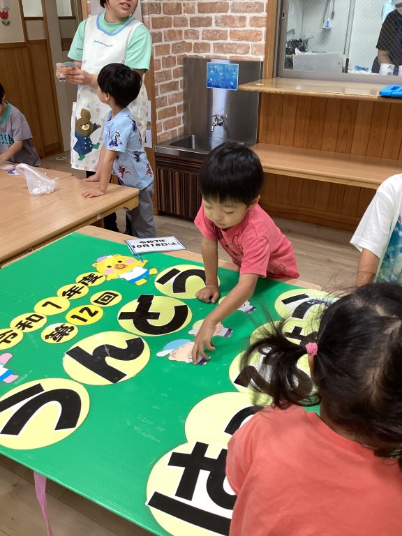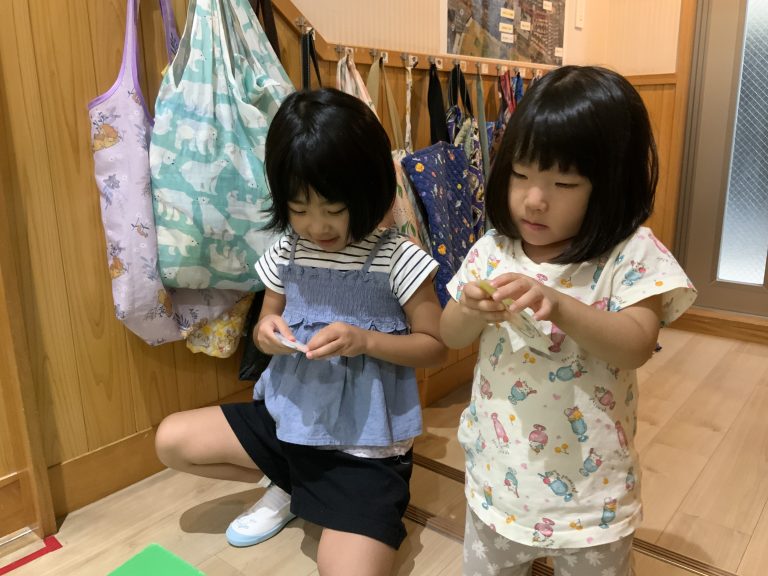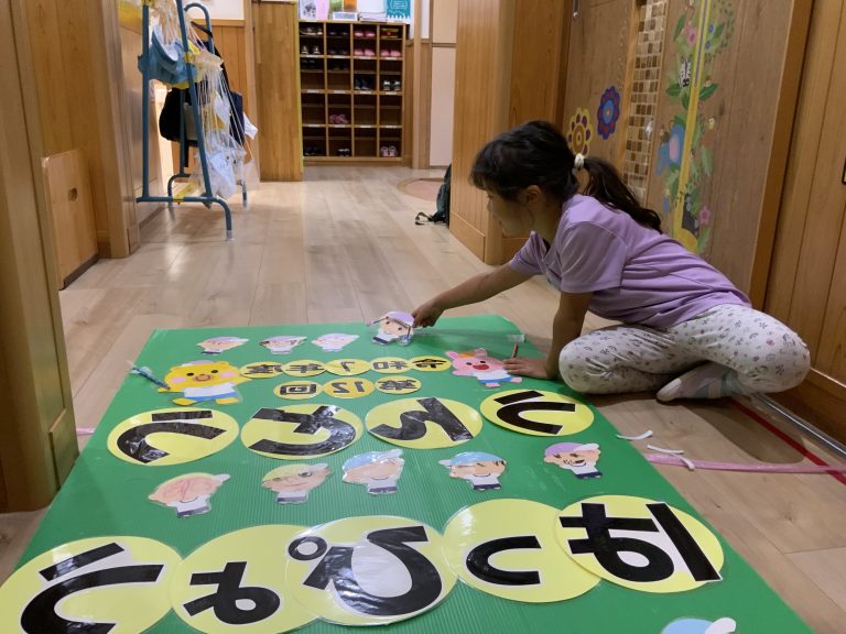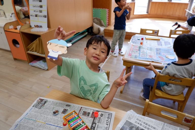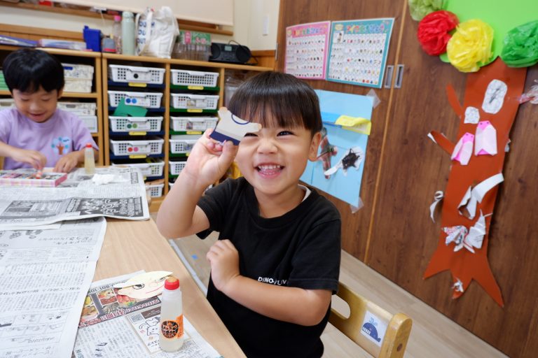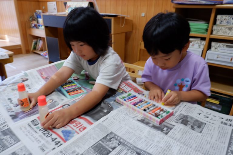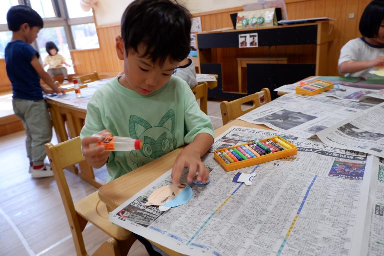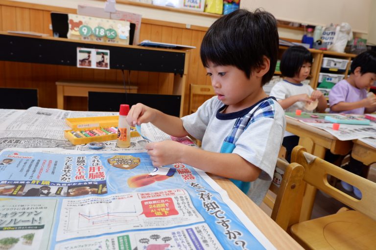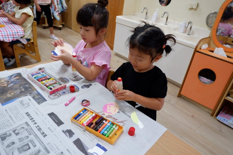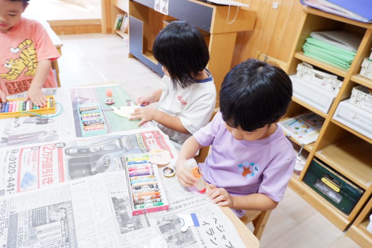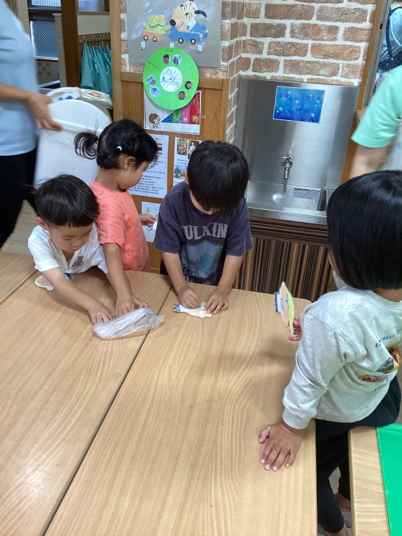 なるべく声をかけすぎず、「ここに貼りたいんだけど、どのくらい糊を使ったらいいと思う?」など子ども達が考えて貼れるようにしています♪