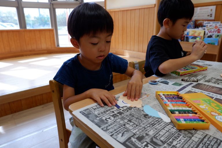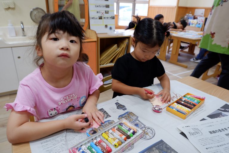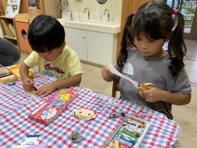 「ちょっと難しい…」なんて言う子もいましたが描き進めていくうちに自信を持ってクレヨンを握っていました!