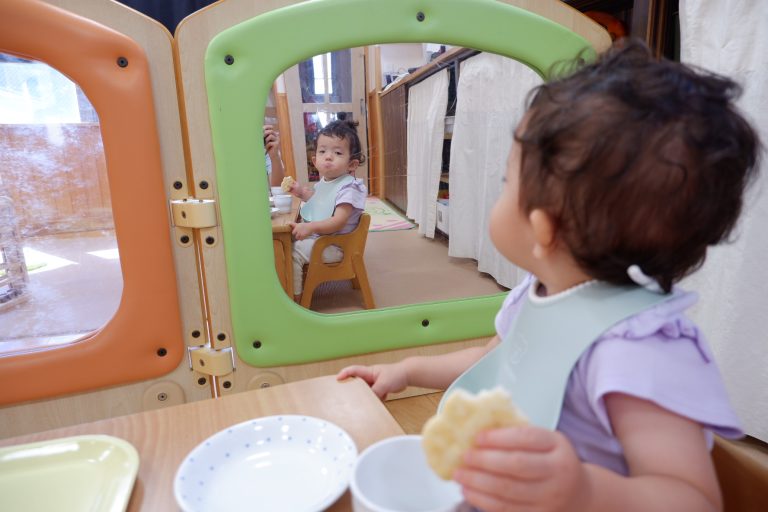 この後も、鏡に映った顔を見ながら、ベロを出したり、笑って見たり・・・、色々な表情をして楽しんでいました✨