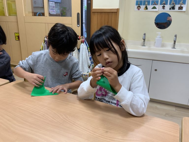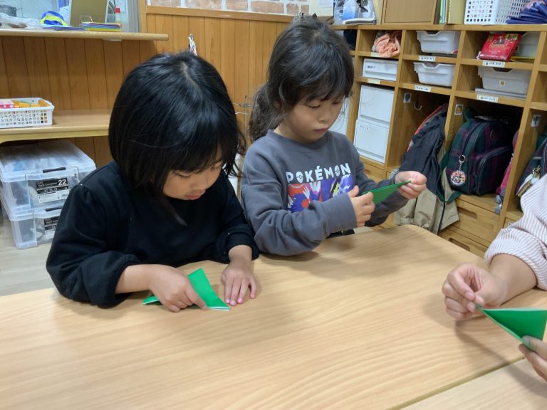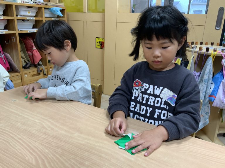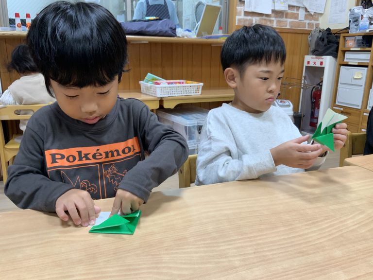 七五三についてお話しをしましたが、興味をもって聞いてくれました。縁起がいいと言われている鶴と亀を作りましたよ。