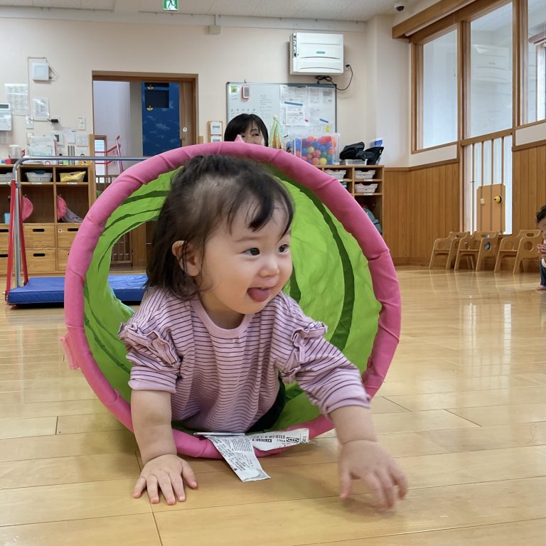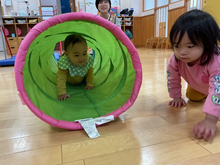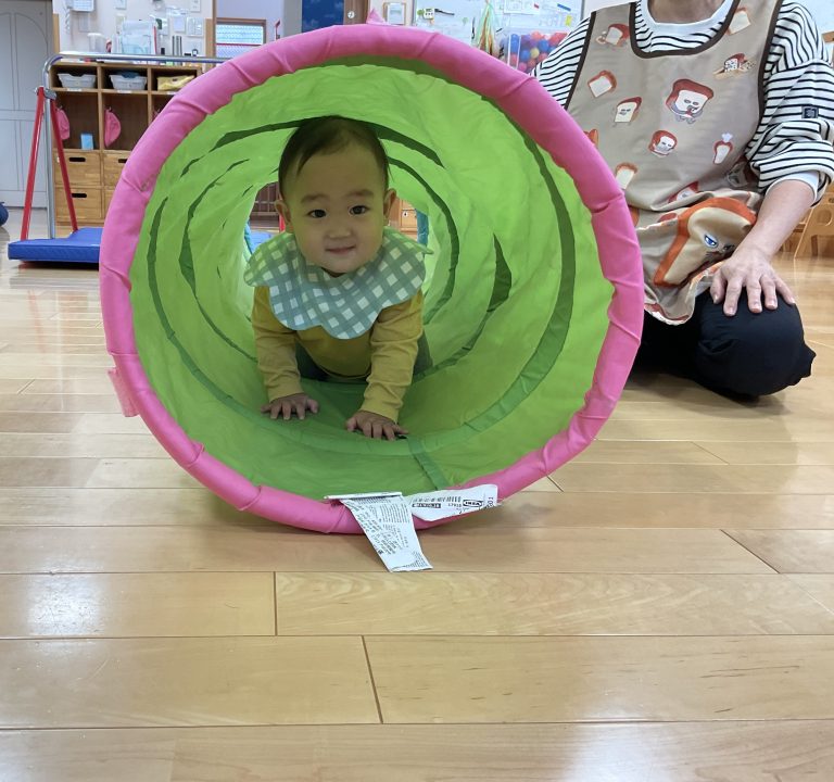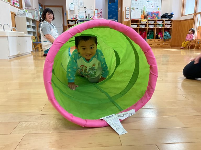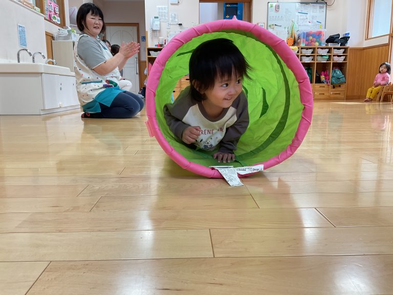 ひよこ組のお友達も、みんなの応援でトンネルくぐりが出来ましたよー。