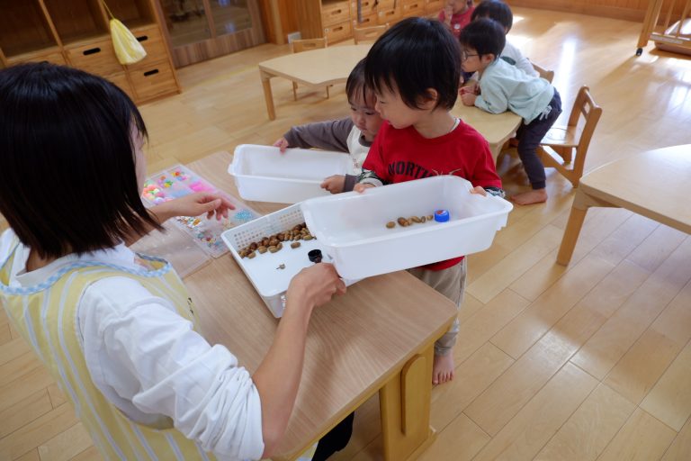 好きなペットボトルを選び、ドングリ、中に入れるビーズなどを順番に選んでいきましたよ😊