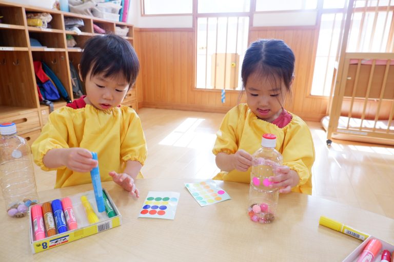 選んだ後は、ペットボトルの中に入れて、シール、マジックで模様をつけていきました☺️