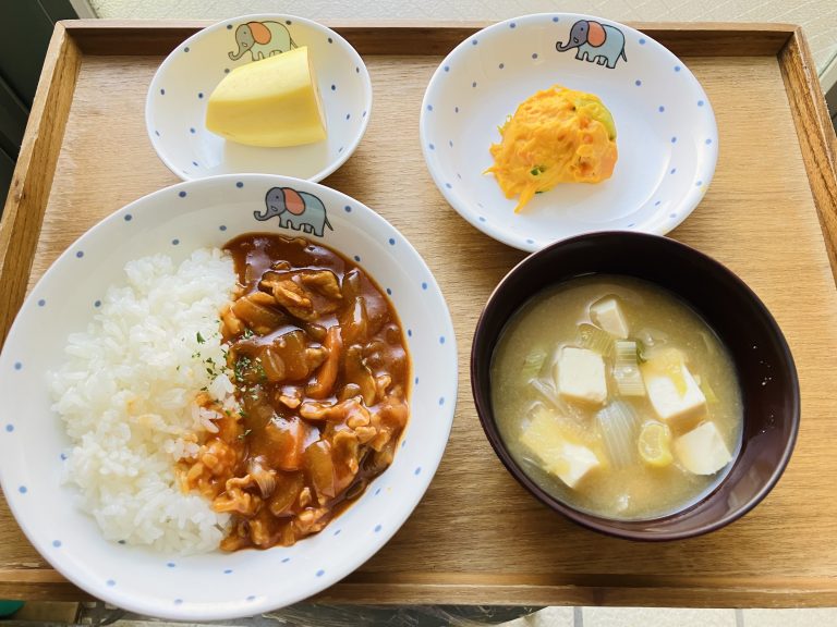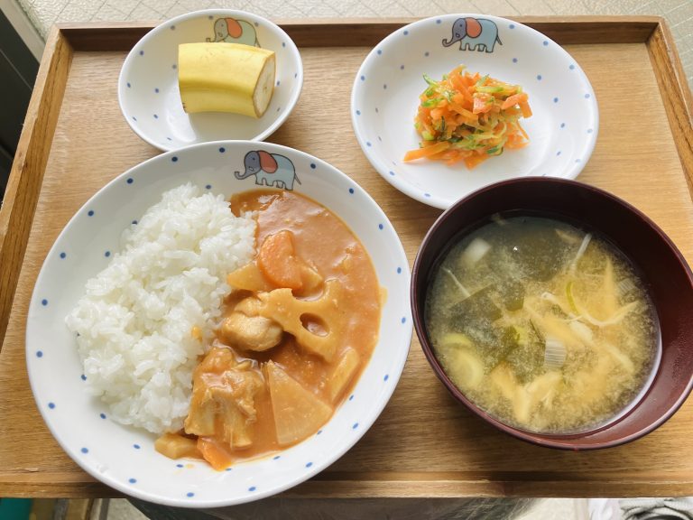 ・和風根菜カレーライス・人参サラダ・味噌汁・バナナ
