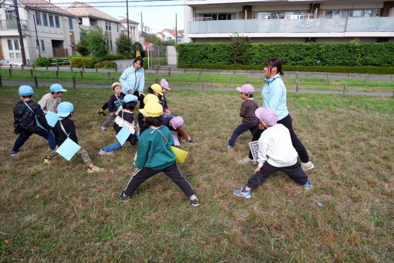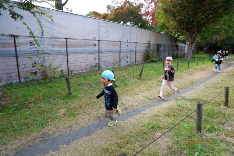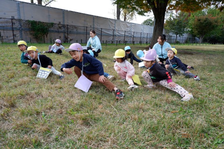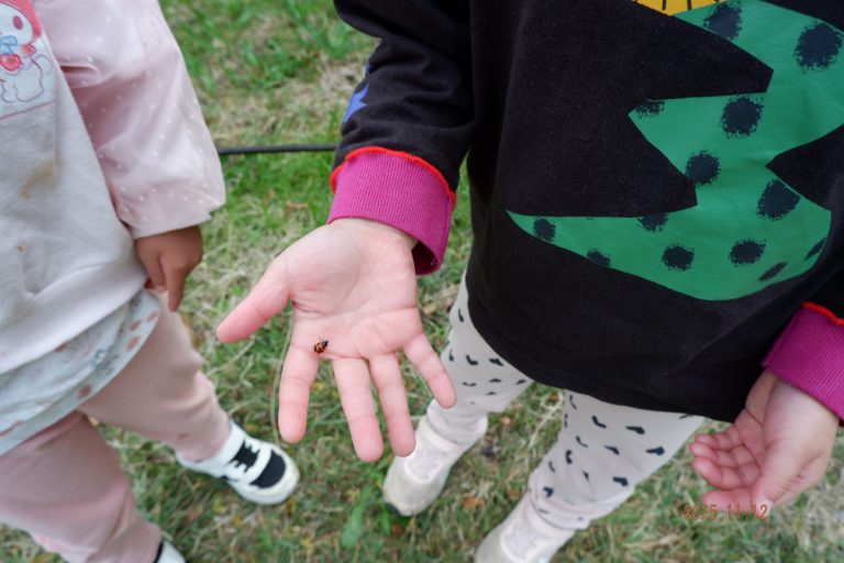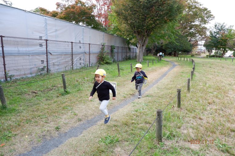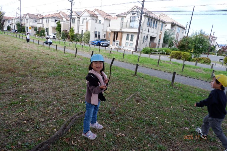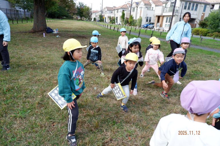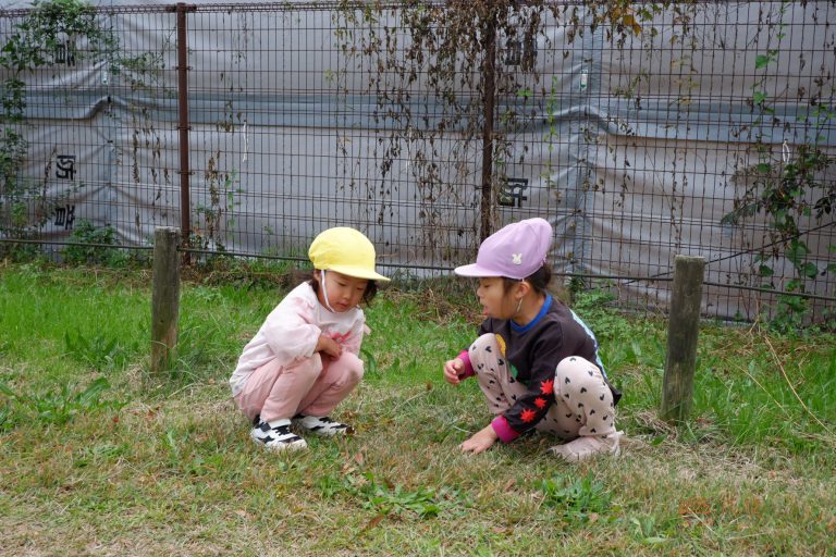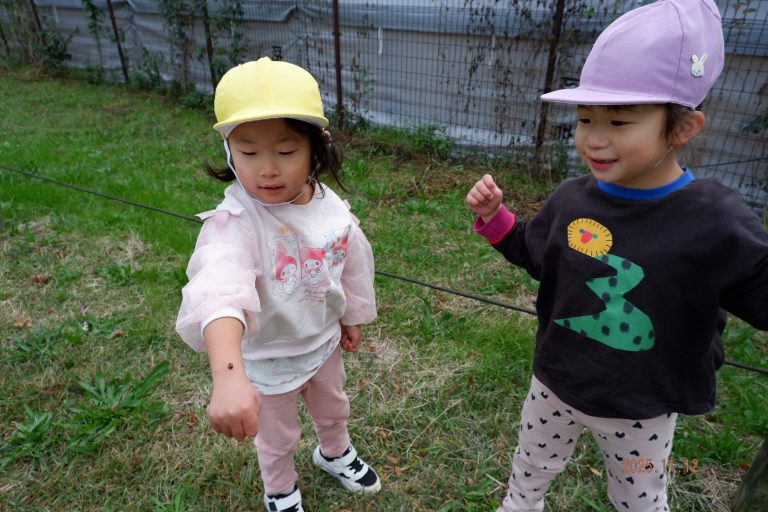その後は、虫を探したり、だるまさんが転んだなど、好きな遊びを見つけて遊びました。