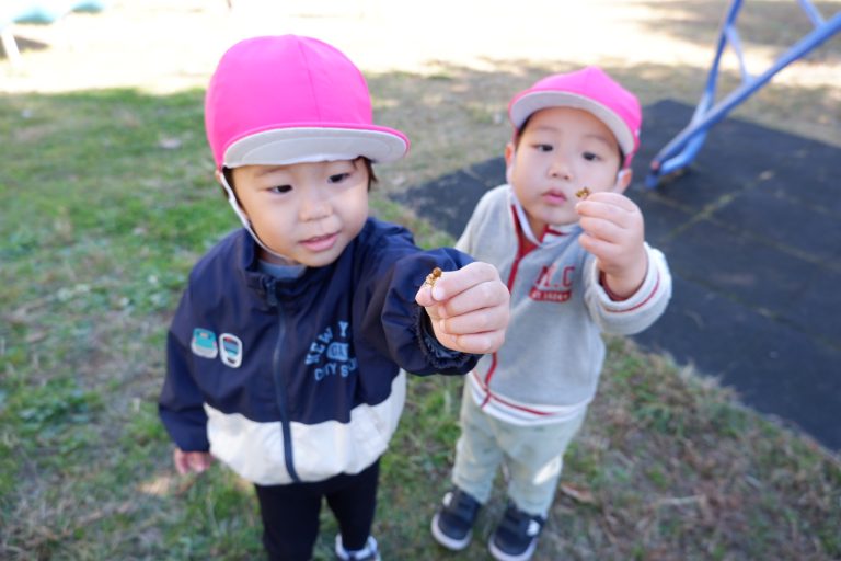 日向ぼっこをしたり、公園内を散歩したり、秋の自然を見つけたりと、ゆったりと好きな遊びを楽しみました♪