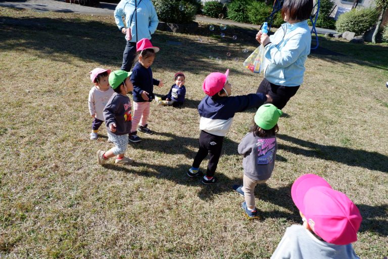 空高くに飛んでいったシャボン玉に「バイバーイ!」と手を振る姿も見られました♡