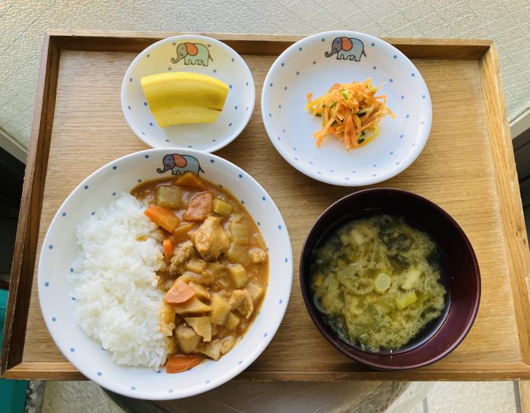 ・和風根菜カレーライス・人参サラダ・味噌汁・バナナ