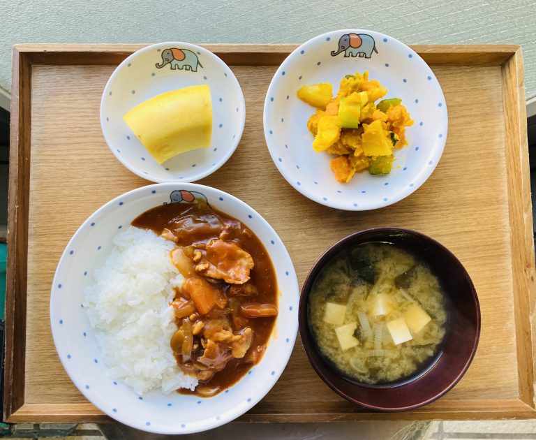 ・ハヤシライス・かぼちゃサラダ・味噌汁・バナナ
