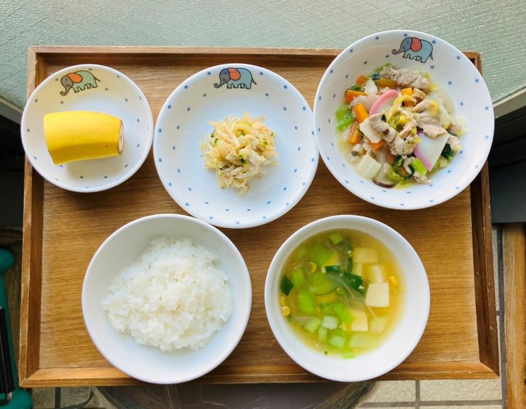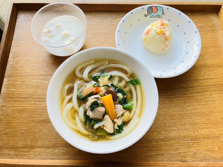 野菜のつゆうどん・ポテトサラダ・バナナヨーグルト