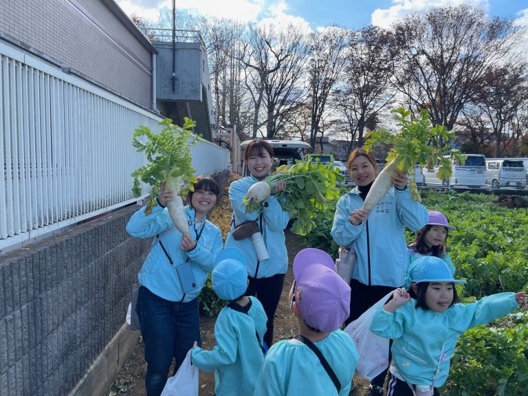帰り道には「大根、お家でどんなお料理にして食べようかな」という会話をしながら園に戻りました。
