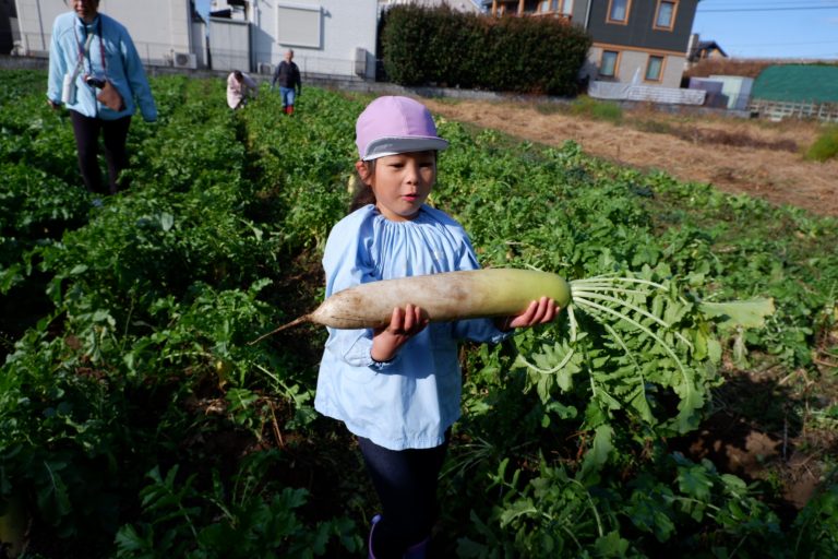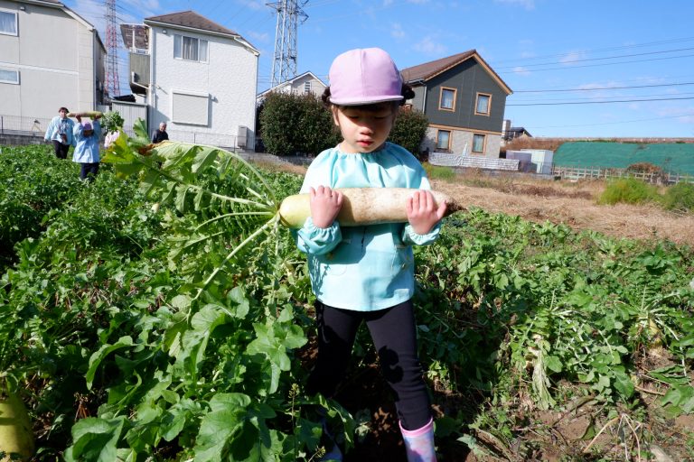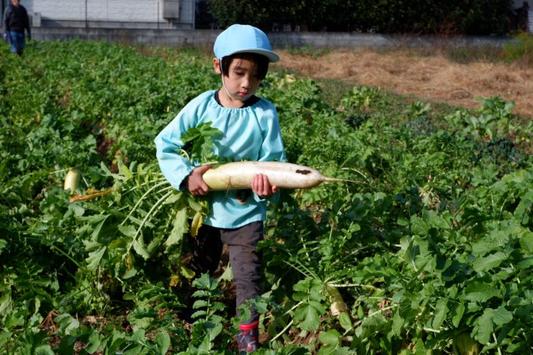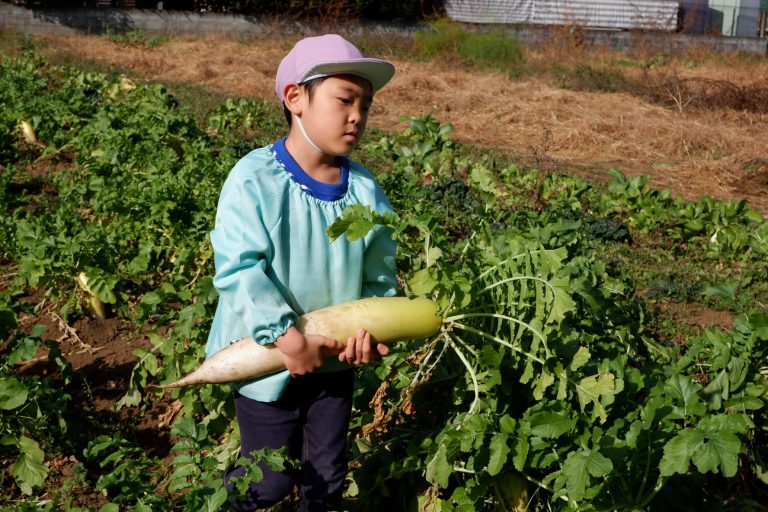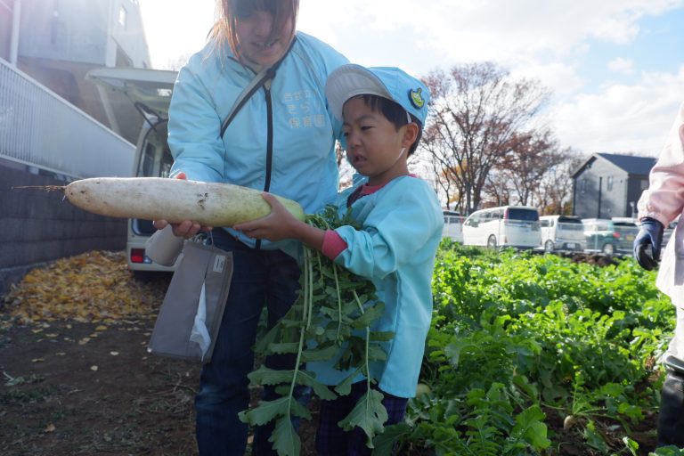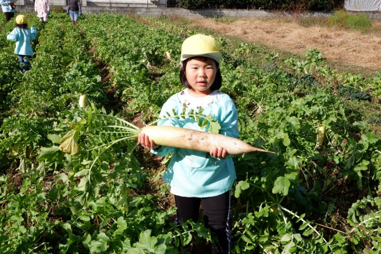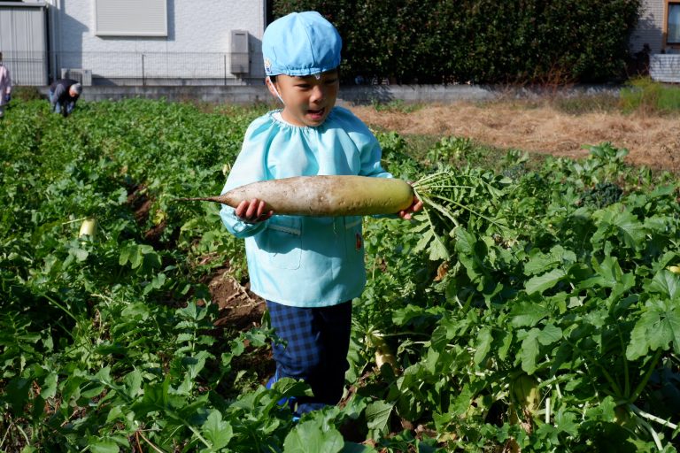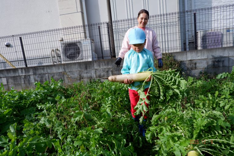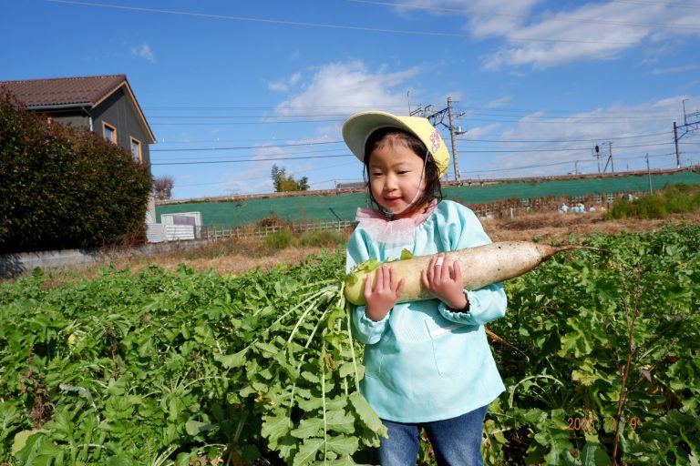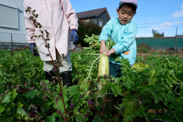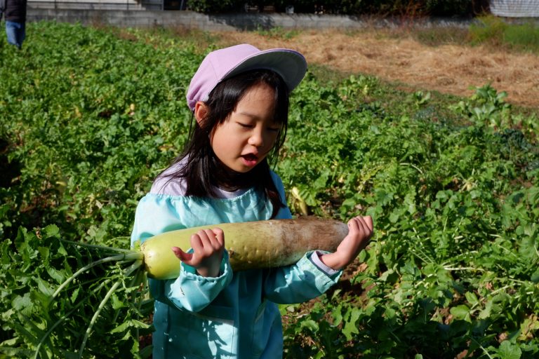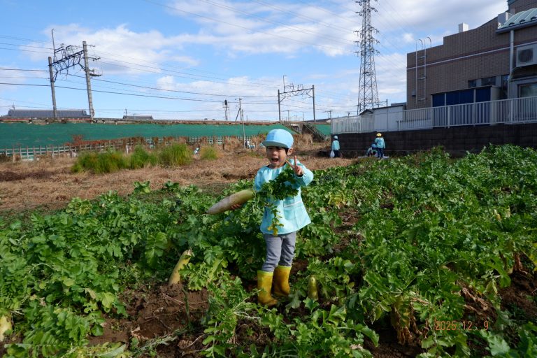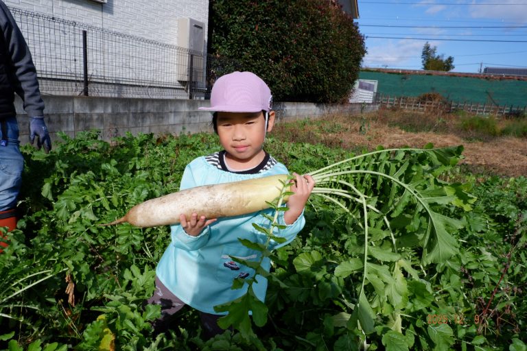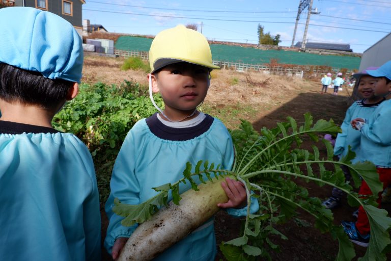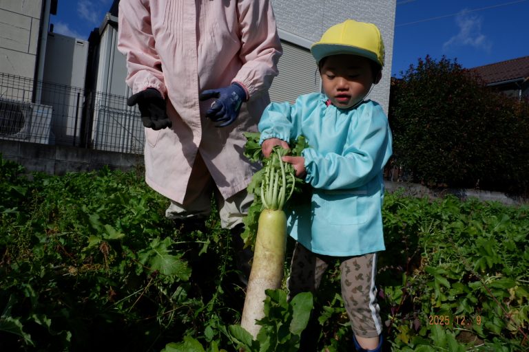 帰り道には「大根、お家でどんなお料理にして食べようかな」という会話をしながら園に戻りました。