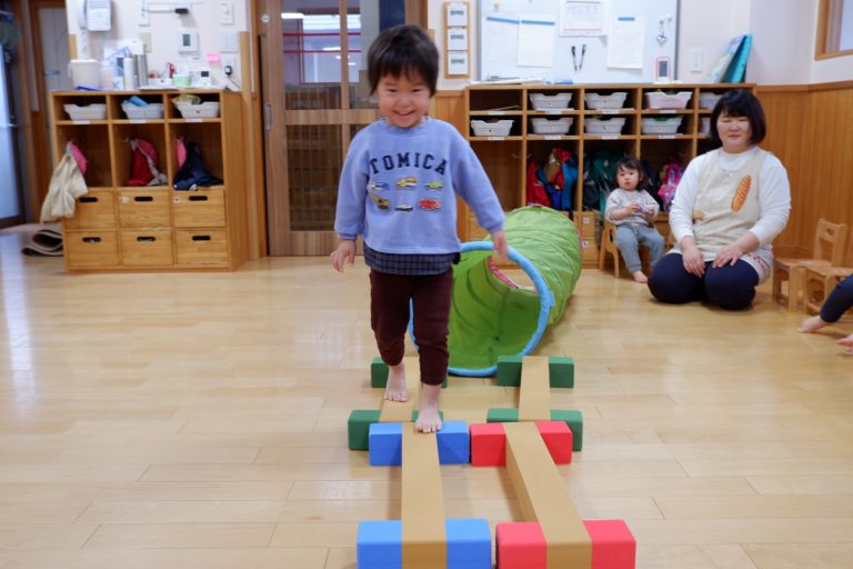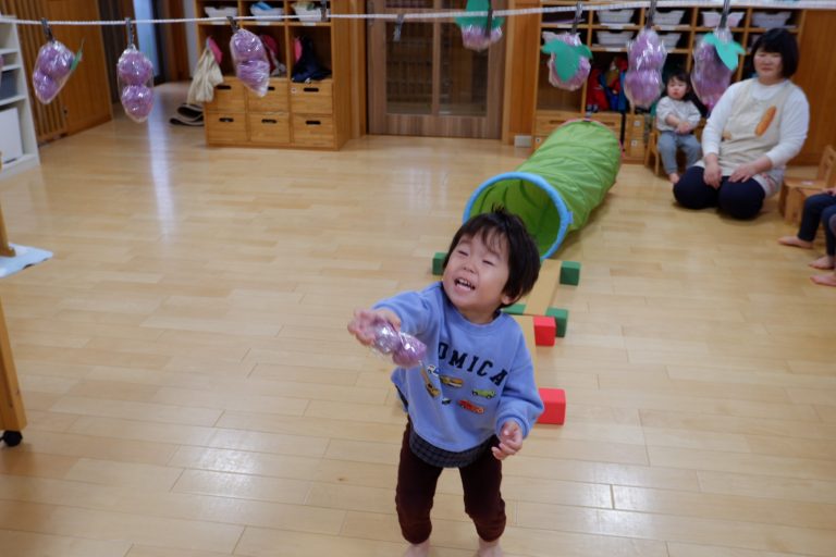 雨の一日でしたが、お部屋の中でも身体を動かして遊ぶ事を楽しみました。