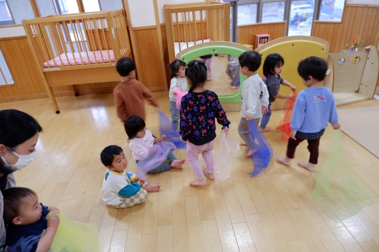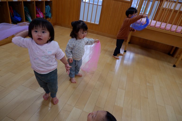 ピアノの音に合わせて体を動かしたり、スカーフを揺らして楽しみました☺️
