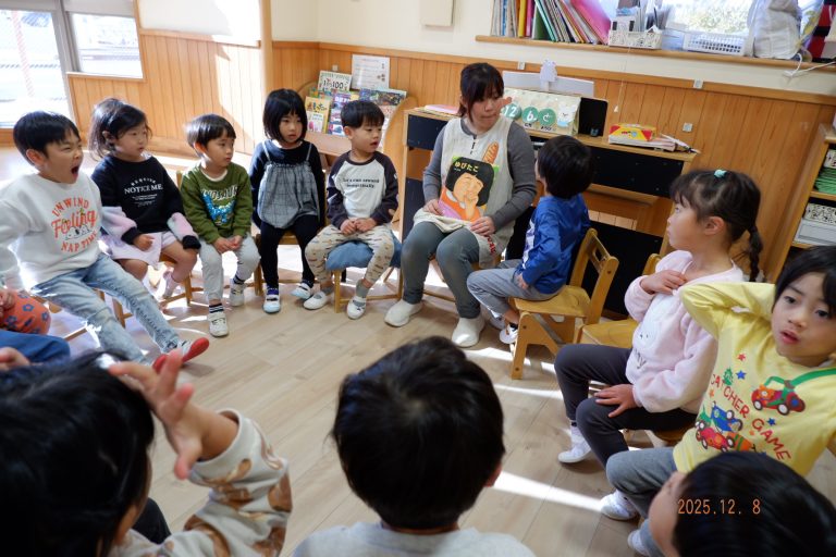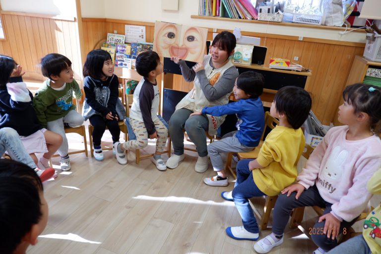 指しゃぶりをしている子にはドキッとするテーマですが、お話し自体もコミカルで、登場人物が関西弁を使うので、子ども達笑いながら見ていました!