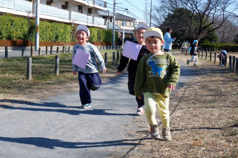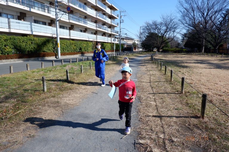 前回に引き続き川沿いでマラソンをしました!前回楽しかったのか今回もやる気満々な子がたくさんいましたよ。