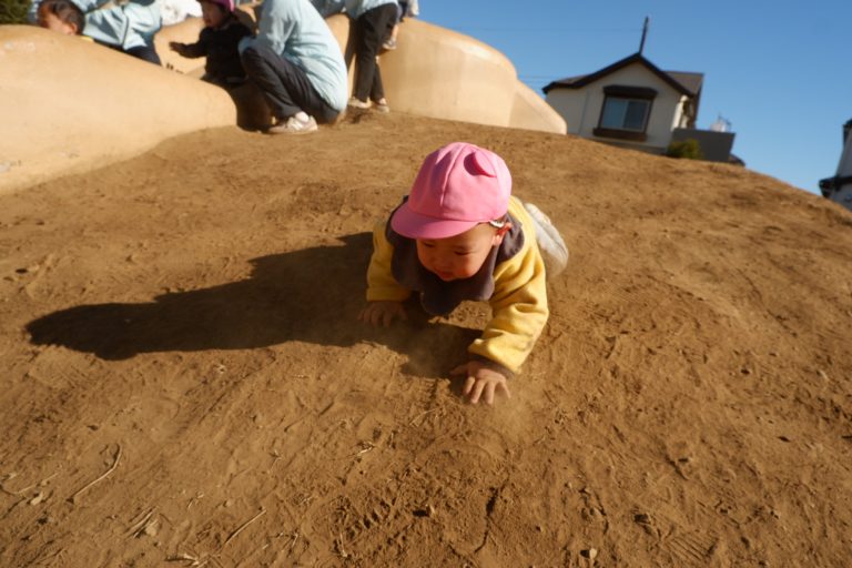 他には、山の上り下り。全身を使って、夢中で登っていきます。