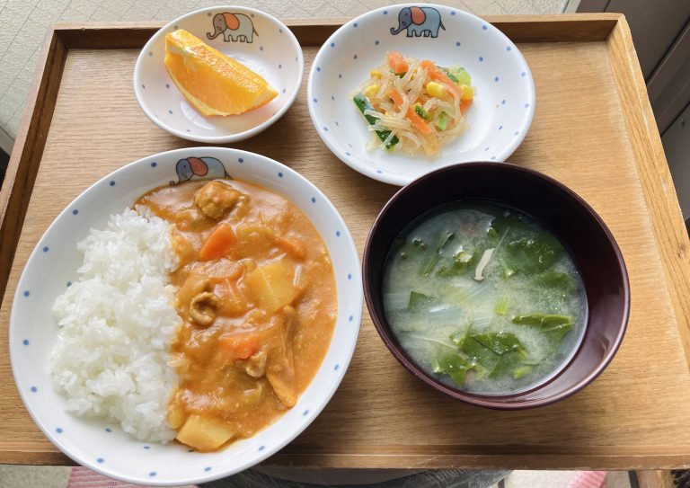 ・ポークカレーライス・春雨の彩りサラダ・味噌汁・オレンジ