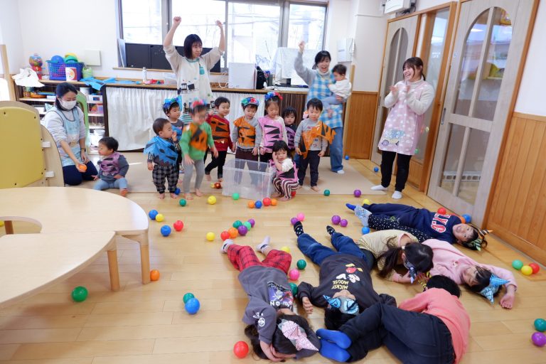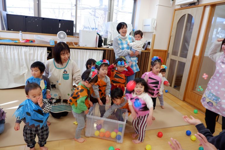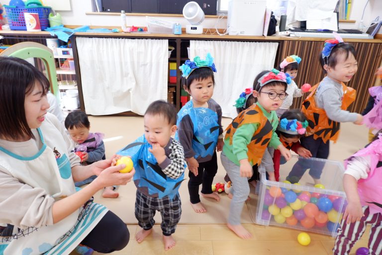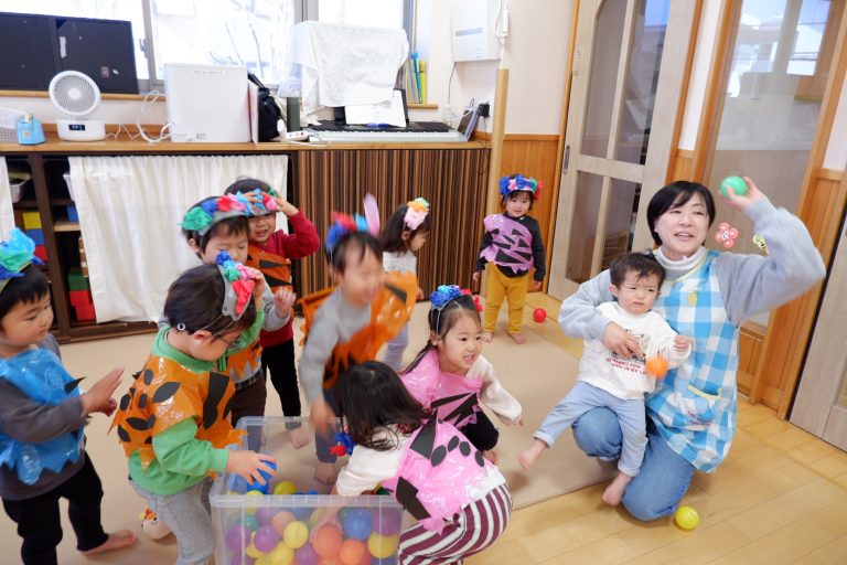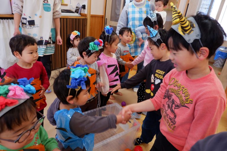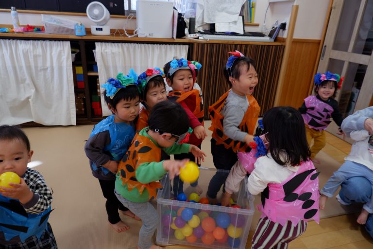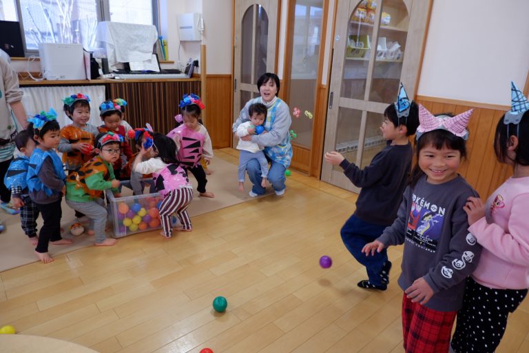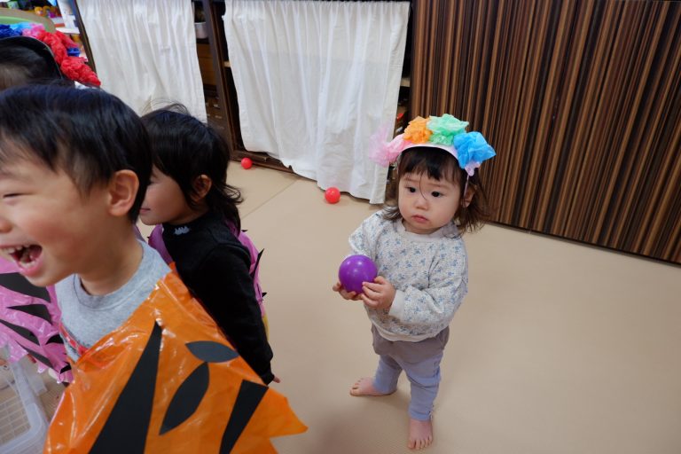 「鬼は外〜!福は内〜!」と、夢中で大きな声でカラーボールを鬼さんに投げていました☺️