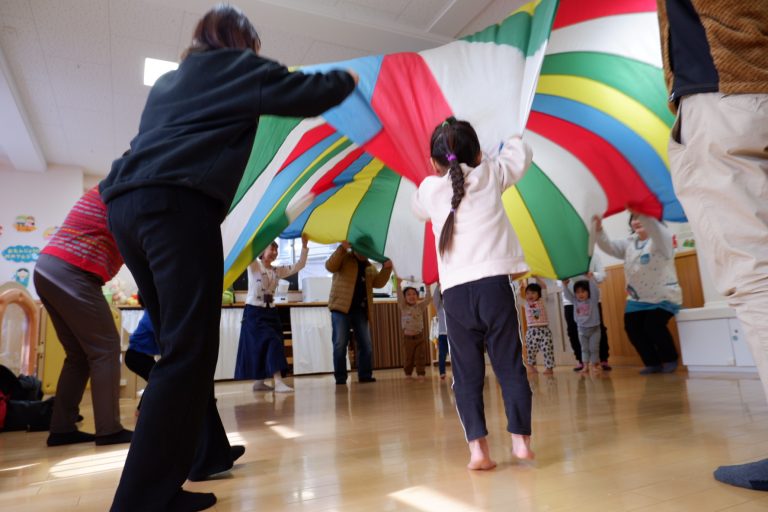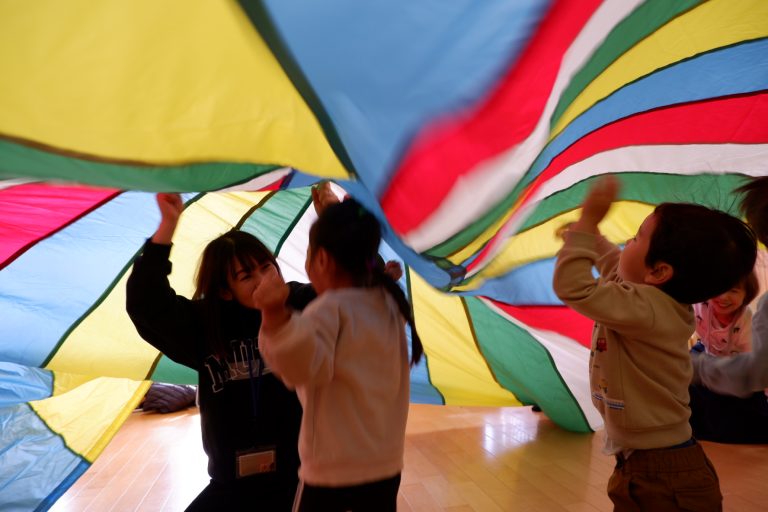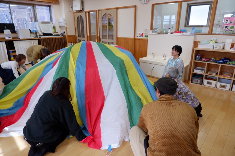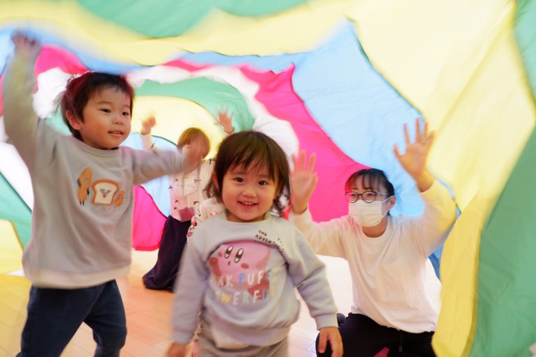 音楽に合わせて、沢山ユラユラと、パラバルーンを動かして遊びました♪