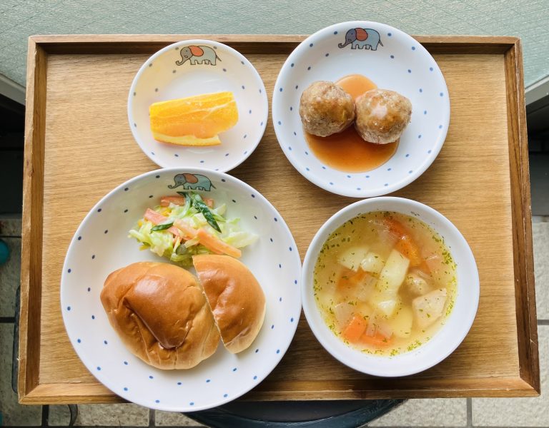 ・ロールパン・蓮根肉団子・コールスローサラダ・ポトフ・オレンジ